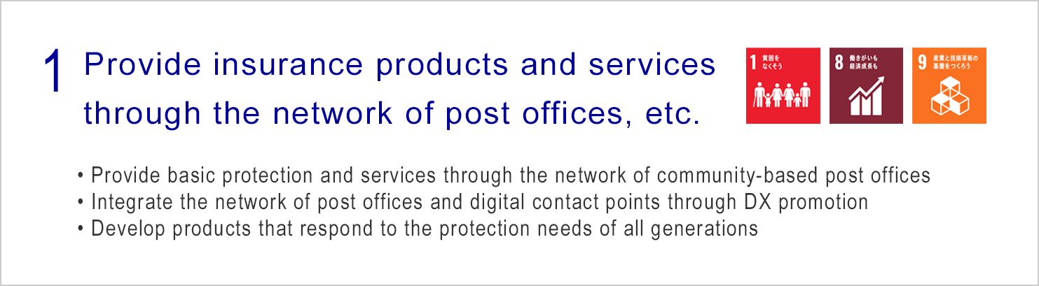 Our predecessor, Postal Life Insurance Business, was launched with the social mission of “protecting the means of fundamental livelihood of the public through simple procedures.” We have been privatized, but our mission to support people’s lives through insurance has not changed.