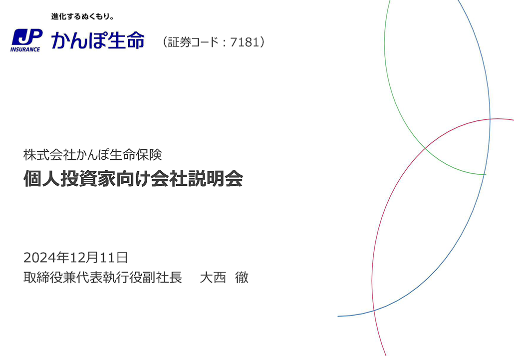 個人投資家説明会資料(PDF:5,608KB) 個人投資家説明会資料(説明要旨付)(PDF:2,850KB) |