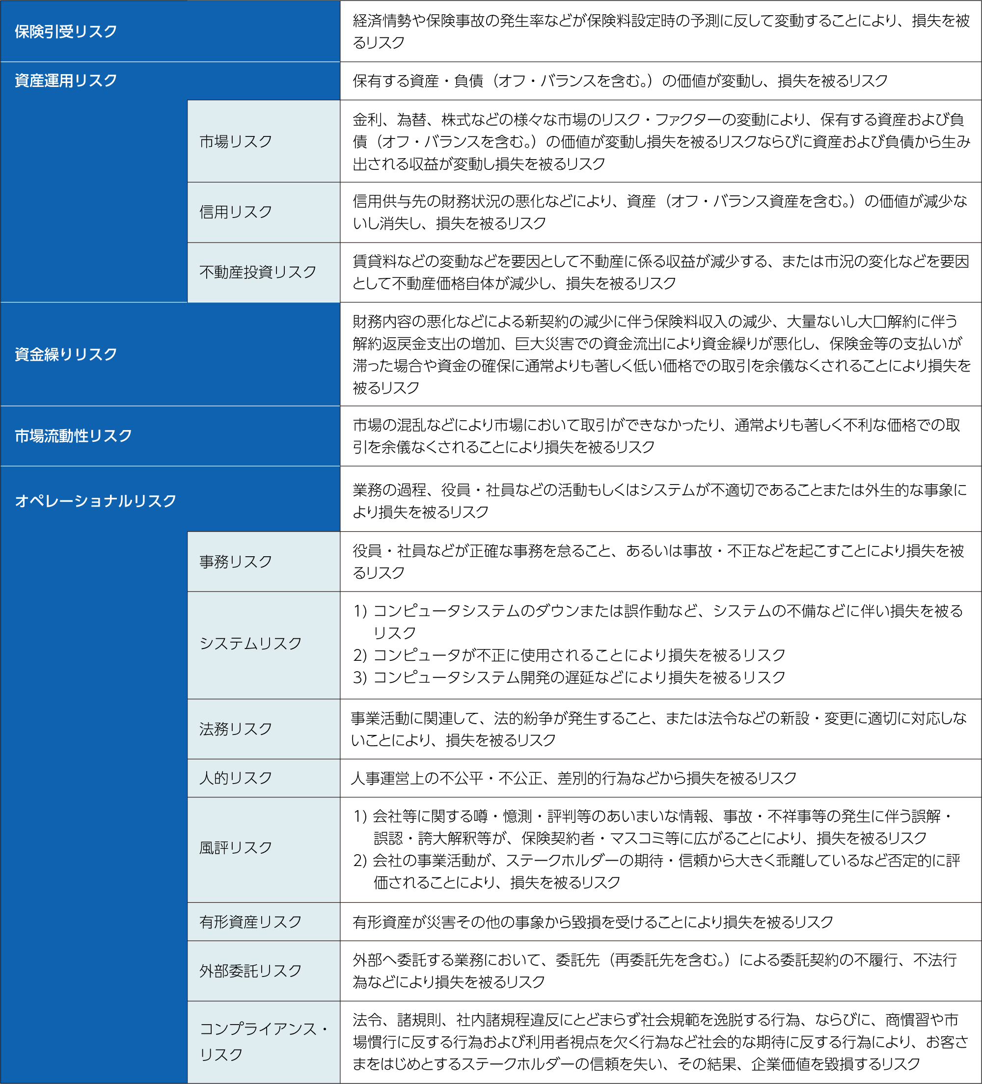 当社はリスク選好ステートメントのもとで、ERMに基づき、事業運営における健全性を確保しつつ、持続的な成長や中長期的な企業価値の向上を実現することとしており、財務健全性を確保しつつ、対資本・リスクでの効率性に配意した収益確保を目指します。