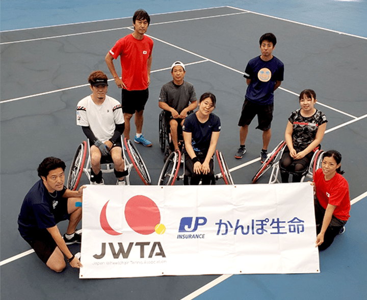 かんぽ生命は、「一般社団法人日本車いすテニス協会」(JWTA) のトップパートナーとして、車いすテニスを支援しています。