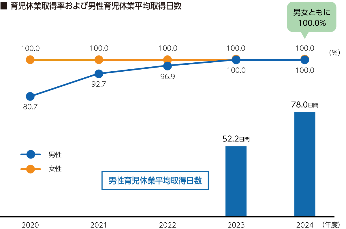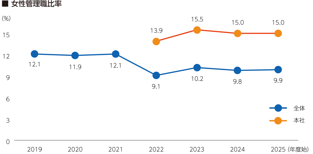 女性社員を対象に、社員交流や役職者向けの研修を実施し、計画的かつ継続的な育成に取り組んでいます。