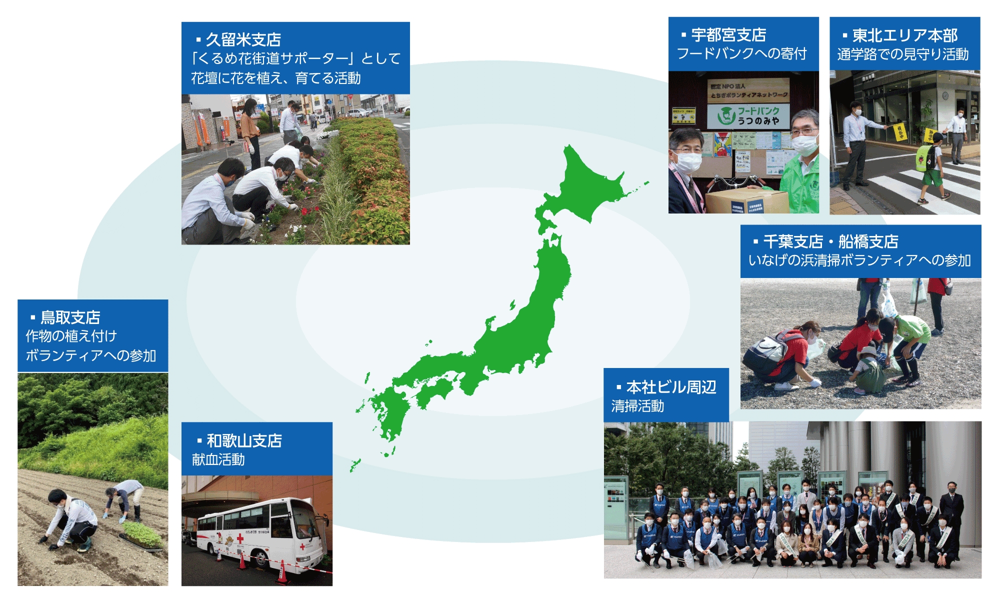 「いつでもそばにいる。どこにいても支える。すべての人生を、守り続けたい。」という経営理念に基づき、全国各地の支店やエリア本部、サービスセンターにおいて、地域に寄り添った社会貢献活動を実施しています。