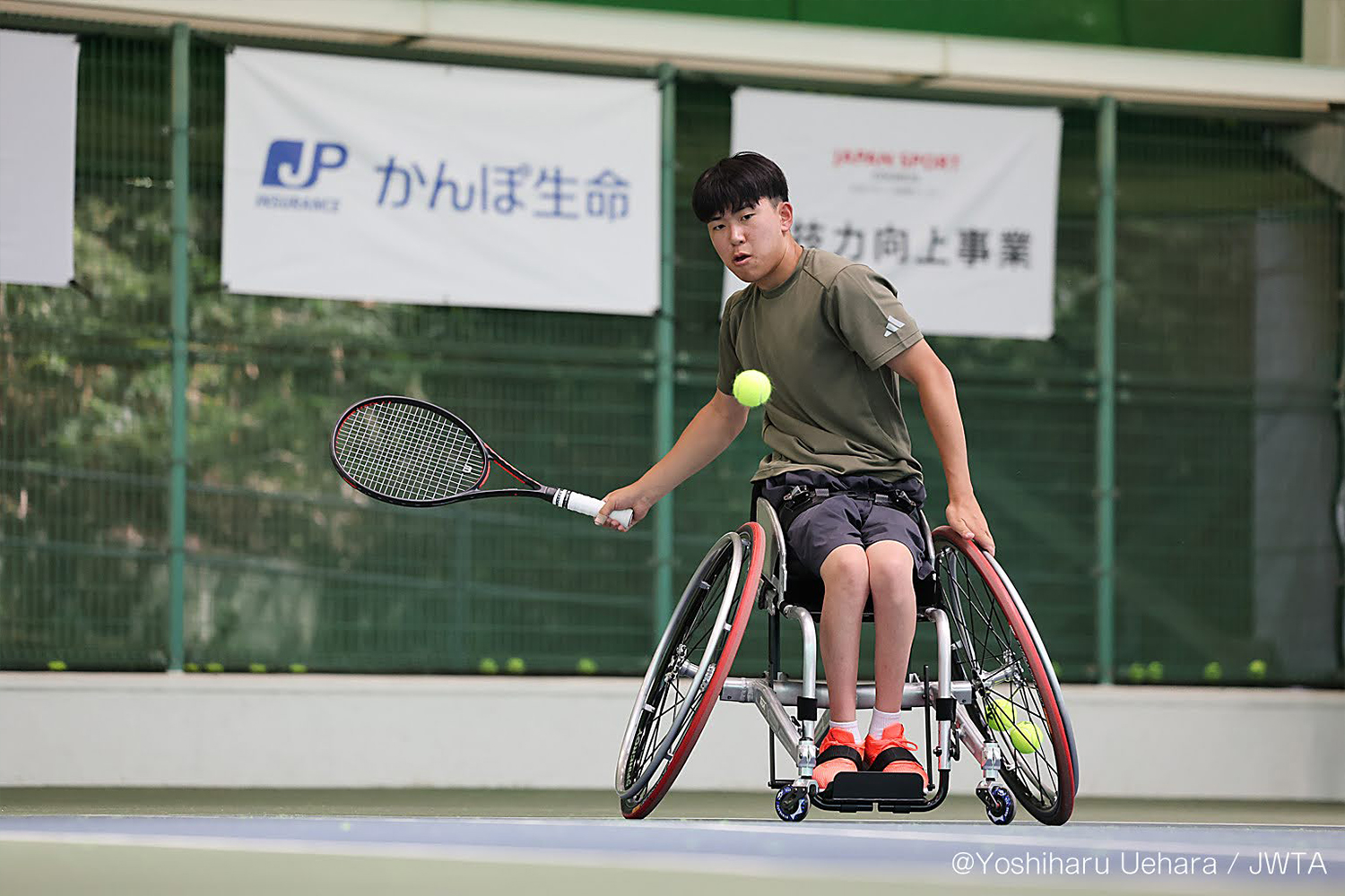 また、2022年度より、次世代アスリート支援として、車いすテニスの髙野頌吾選手(かんぽ生命所属)を応援しています。髙野選手は世界各国で開催されるITF国際大会に出場し、活躍している注目の若手アスリートです。(世界ランキング28位:2025年10月6日時点)