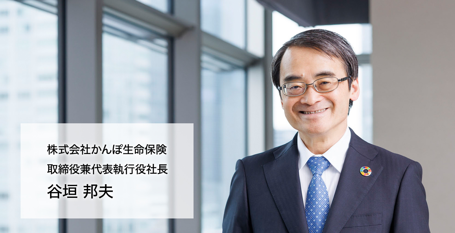 当社の前身である簡易生命保険が生まれた1916年当時、生命保険は富裕層の方々を除き加入が難しいものでした。それを小口化し、郵便局という身近なネットワークを通じて基礎的な保障を広めたいという想いで、創業から100年以上、当社は国民生活の安定に貢献してまいりました。私は、企業の存在価値は「世の中のお役に立ち、お客さまから感謝されること」、この一点だと考えています。当社で言えば、「お客さまから信頼され、選ばれ続けることで、お客さまの人生を保険の力でお守りする」という社会的使命(パーパス)を全うすることであり、当社では、こうした事業活動そのものが、持続可能な社会の実現に貢献するための取り組みであると位置づけています。