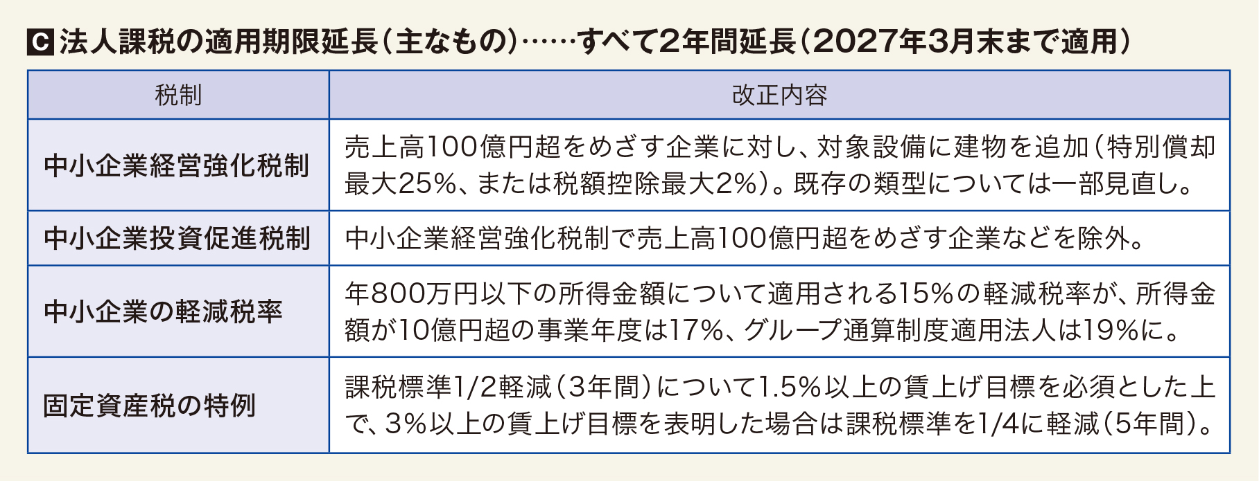 なお、図「A」の基礎控除が適用されるのは25年・26年の2年間で、27年以後は給与年収200万円〜2,545万円までは一律58万円となる。一方、給与所得控除の引き上げは恒久的な措置。また、今年(25年)中の源泉徴収は従来の税額表で行い、改正による減税分との差額は年末調整で精算することになる。