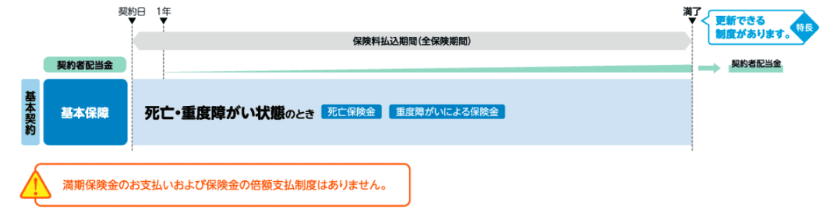 このページの商品内容・制限事項の記載は、概要または主なものを記載しております。例えば、保険金をお支払いできない場合(例:保険金受取人の故意)があるなど他の制限事項があります。お申し込みの際には、生命保険募集人(担当者)がお客さまにご説明・お渡しする「保障設計書(契約概要)」「ご契約に関する注意事項(注意喚起情報)」「ご意向確認書」「法人をご契約者とする保険商品のご検討に際してご留意いただきたいこと」の内容を必ずご確認・ご了解ください。