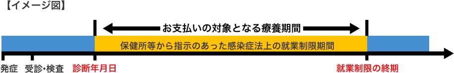 - 「就業制限通知書」等に療養期間が記載されていない場合でも、「就業制限解除通知書」等と組み合わせることでご利用いただけます。