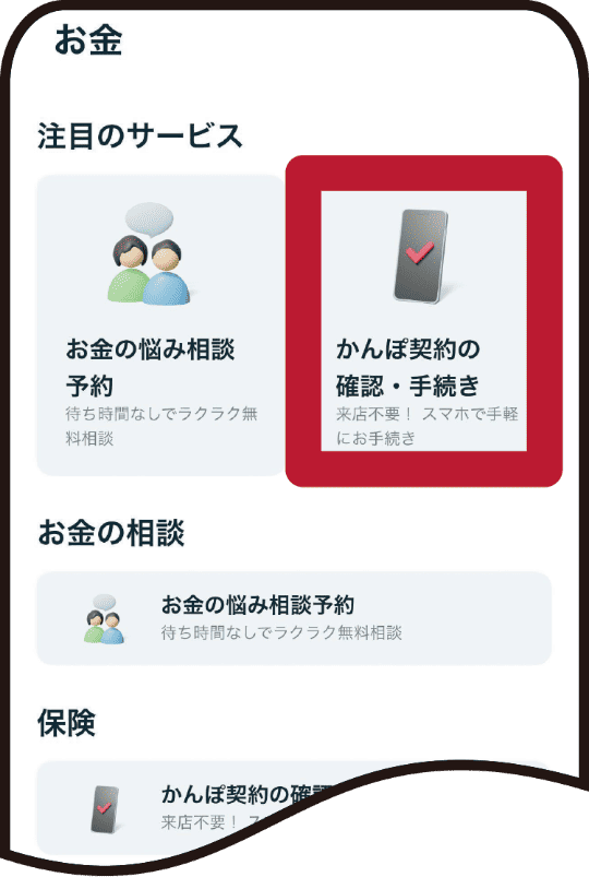 1つのアプリで郵便・かんぽ両方のサービスをご利用いただけます。