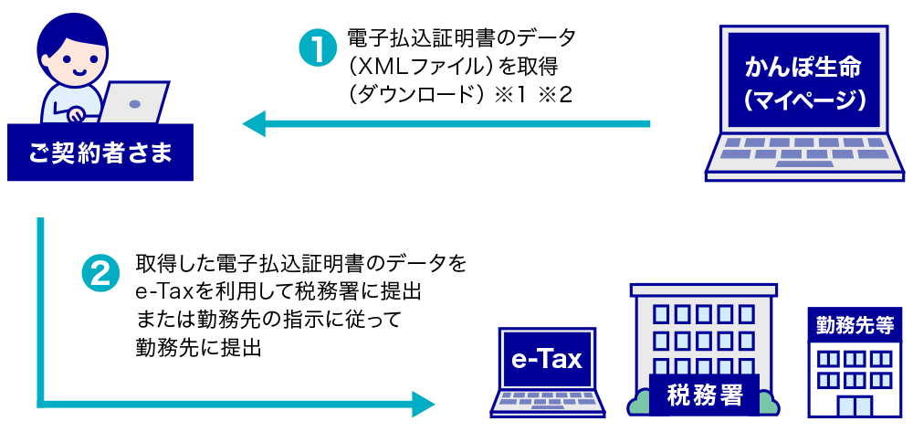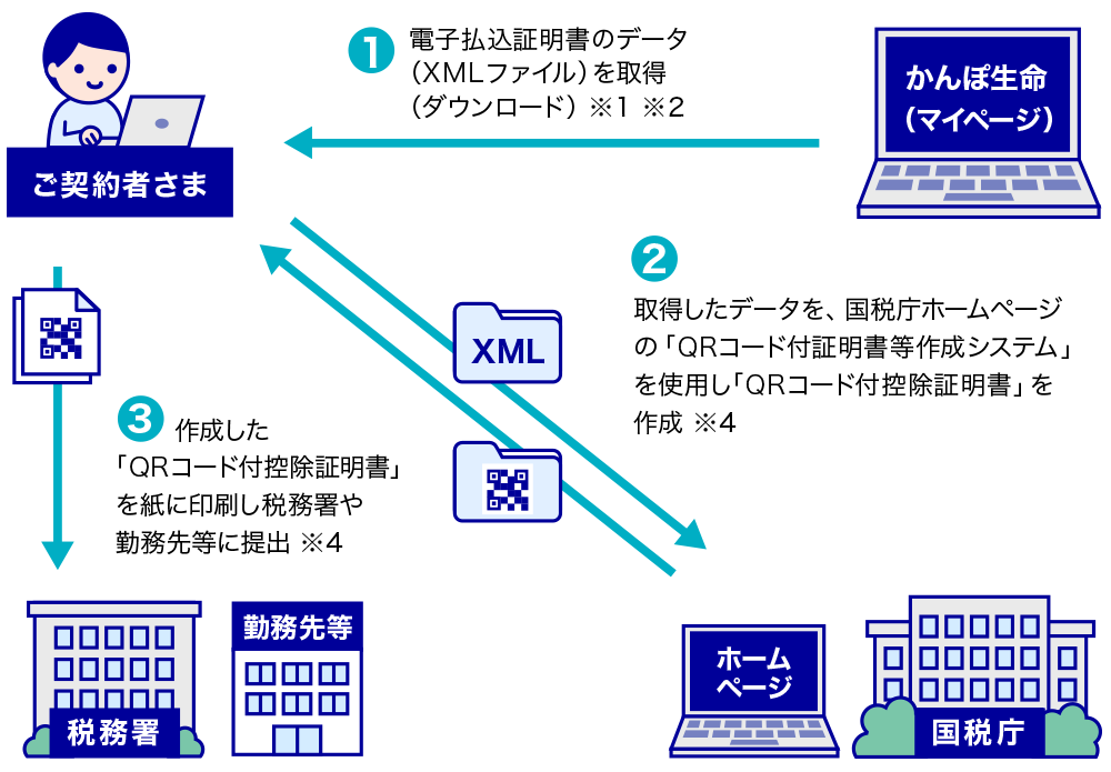 かんぽ生命から郵送される保険料払込証明書を、電子データで取得(申告)することができます。