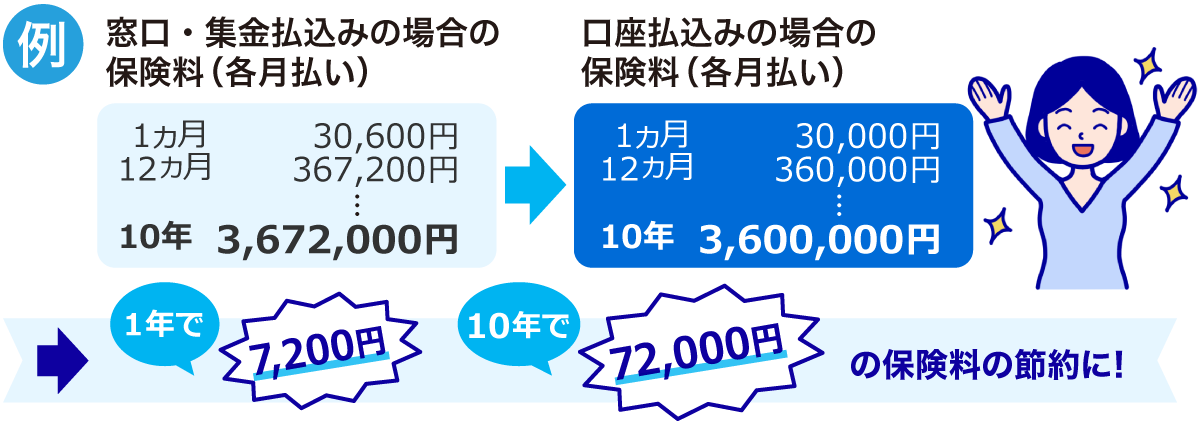 窓口・集金払込みより、保険料がお得になります。