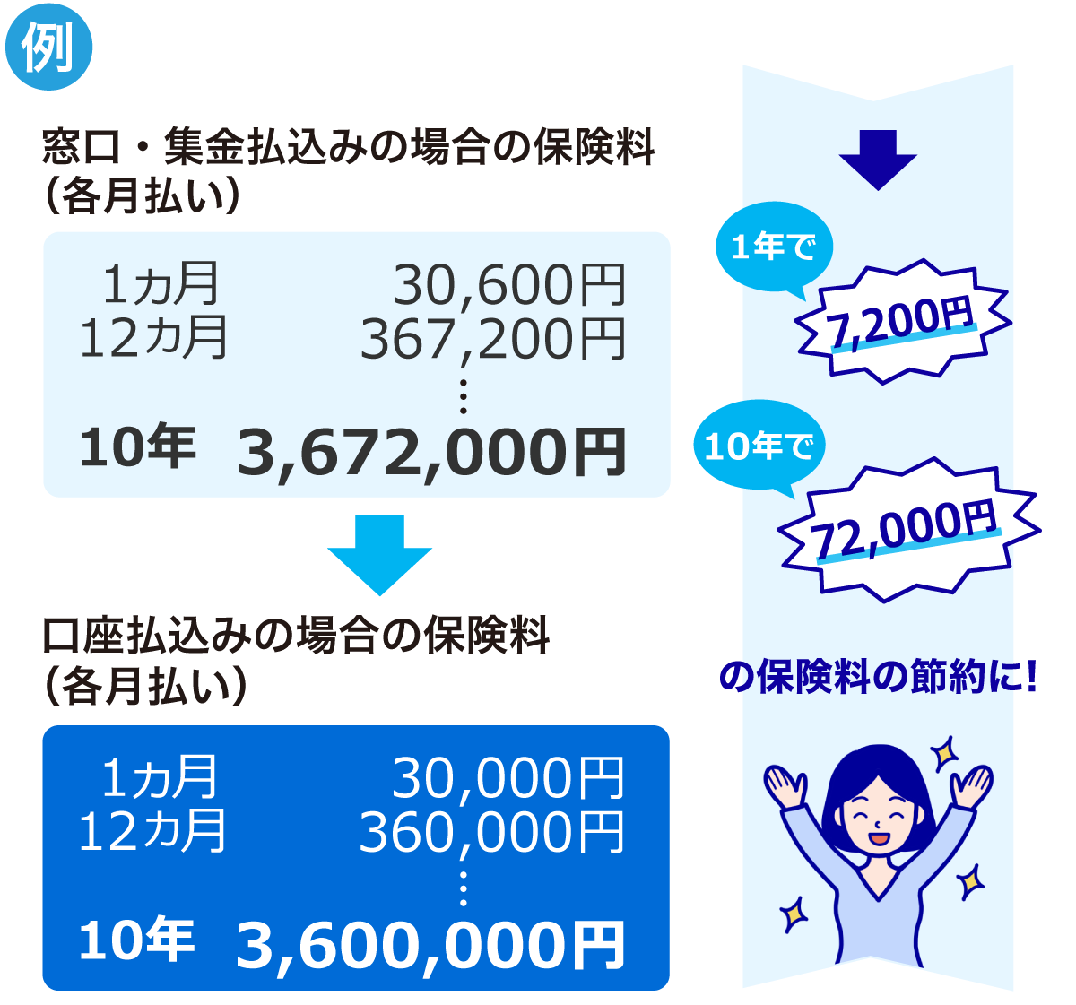 ご契約内容を変えずに、保険料のお払込方法を変更するだけで、お支払いいただく保険料がお安くなります。