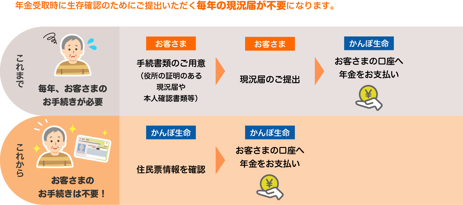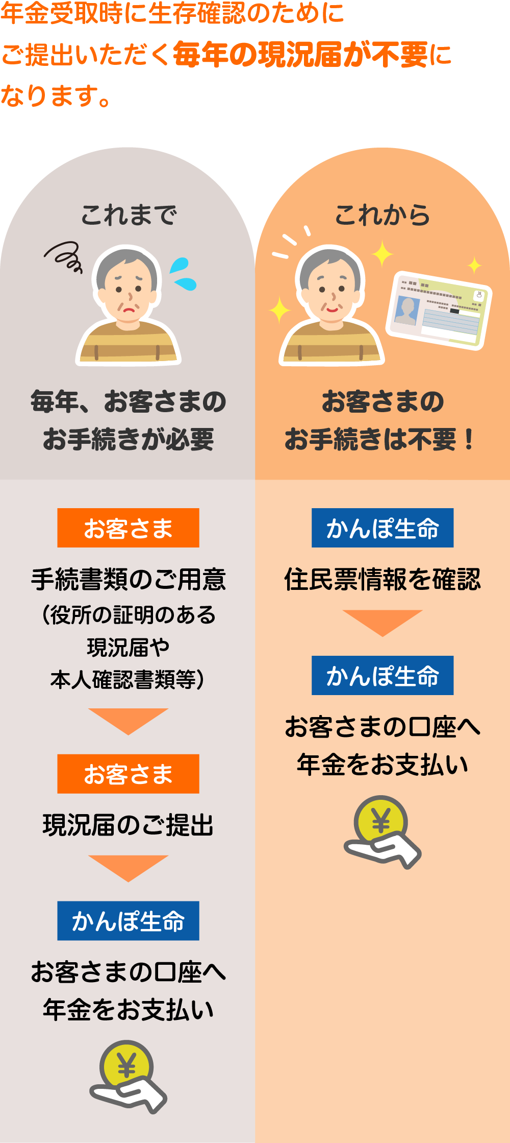- 終身年金の自動受取(毎年の現況届の提出が不要)