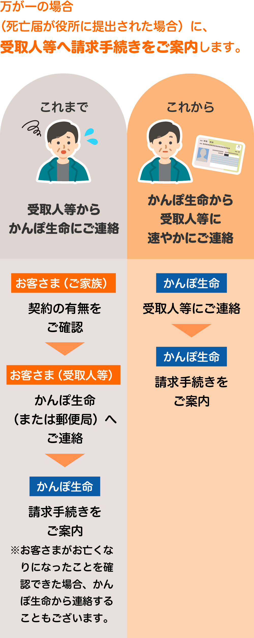 - 上記以外の書類でお手続きが可能な場合がございます。詳しくは、最寄りの郵便局もしくは担当させていただく社員、またはかんぽコールセンターまでお問い合わせください。
