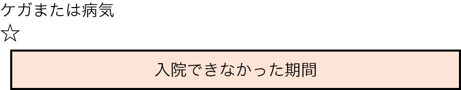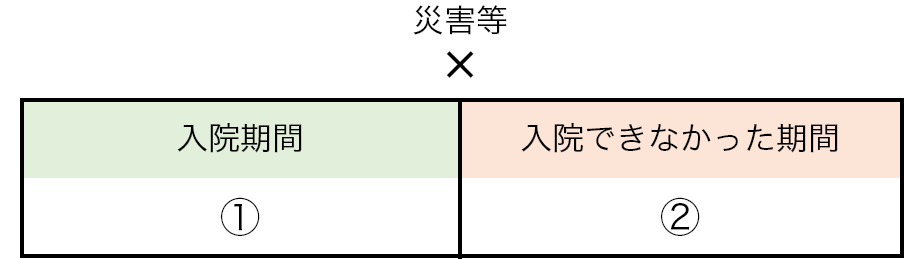 ①の期間:口頭により病院の事情等で入院できなかった旨のお申出をいただくことで入院保険金をお支払いします。