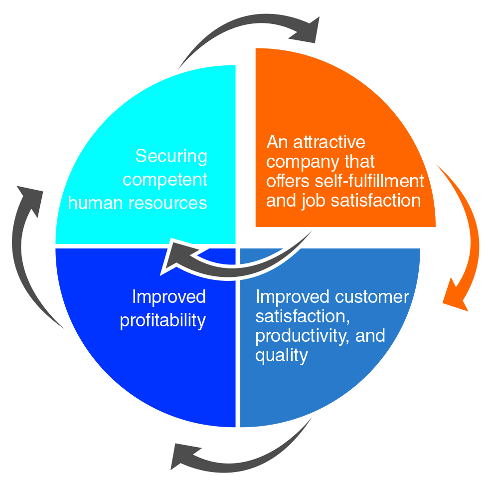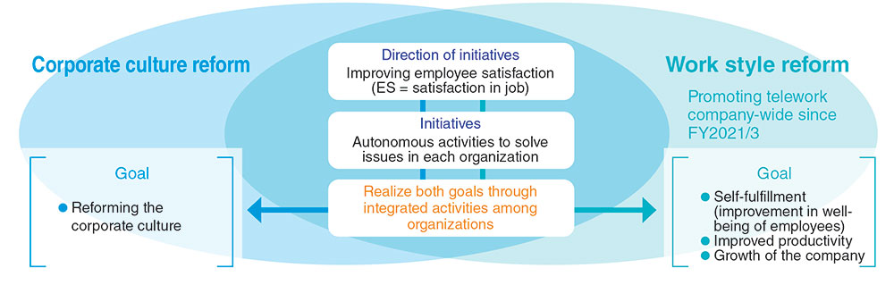 We seek to become a company in which management and employees share a common vision for the future, and each individual feels employee satisfaction (ES) while growing together with the company. In addition, we will listen to the opinions of a wide range of employees and make continuous efforts to improve the organization and build a comfortable working environment.