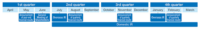 To ensure fairness in our information disclosure, we have established a page for shareholders and investors (IR website), where we post corporate information for investors such as timely disclosure information in a timely manner in both Japanese and English. We also implement an IR Mailing Service to communicate information related to investor relations.