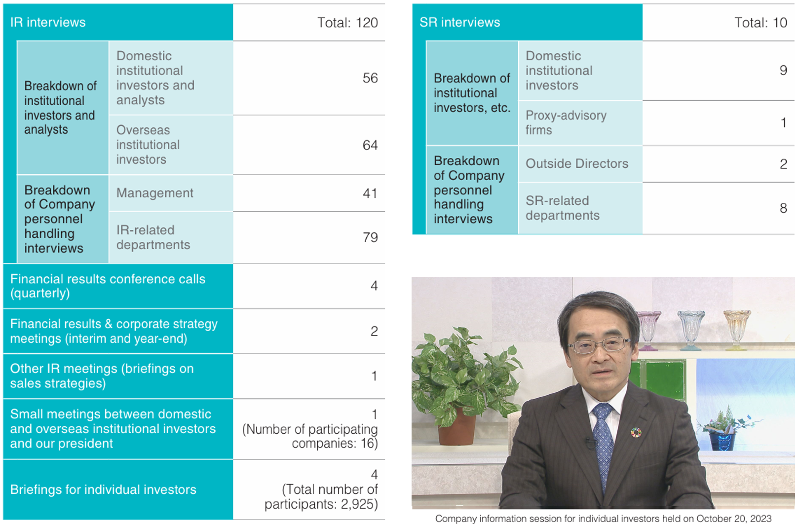 We held a total of four online company information sessions for individual investors in the fiscal year ended March 31, 2024, and received opinions from many individual investors through queries and responses to questionnaires.
