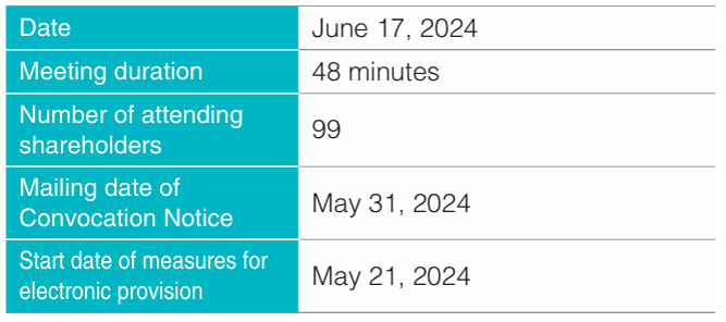 Every year, we hold the General Meeting of Shareholders, giving top priority to enhancing communication with shareholders and improving their convenience.