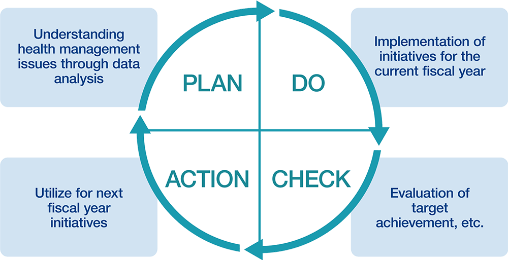 In addition, we will continue to identify issues based on the analysis of the current situation using data obtained from health checkups, etc. Using this information will allow us to formulate and evaluate health management measures.