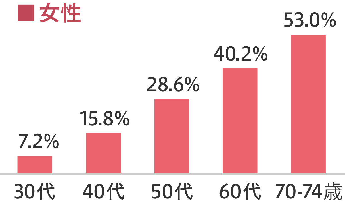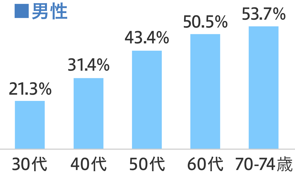また、性・年代別に基準値範囲を超えてしまう人がどのくらいいるのか、基準値範囲を超えてしまうとどのようなリスクがあるのか、この機会に是非チェックしてみましょう。