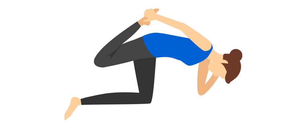 - 右足のつま先を右手でつかみ、足の裏をおしりへと近づけます。