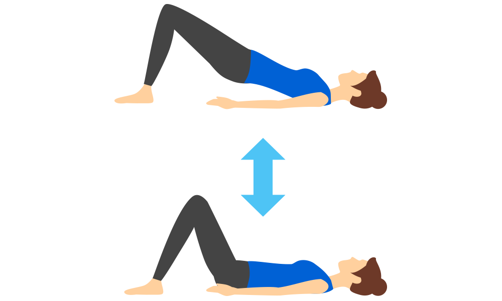 - おしりにグッと力を入れて、腹筋(みぞおちあたり)を意識しながら、ゆっくりと腰を上げていきます。
