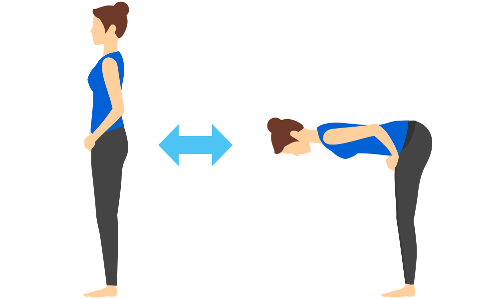 - ゆっくりと前に上体をたおして、90度になったら一旦ストップ。