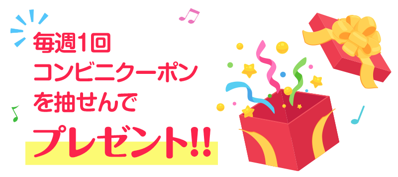 毎週1回コンビニクーポンを抽せんでプレゼント!!