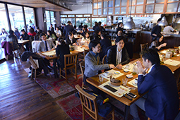 オープン初日から450人を超える来店者数で、店内は連日の大盛況。4日間合計でなんと2,000名を超えるお客さまにご来店いただきました。ランチタイムには行列が出来るほどの賑わいで、中にはかんぽ生命ホームページ等でカフェのオープンを知り、健康メニュー目当てで来店された方もいらっしゃいました!