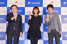 オープン初日の1月23日(木)には、「かんぽHealthy Café」の店内で、タレントの優木まおみさんとスポーツジャーナリストの中西哲生さんをゲストに招いたオープニングイベントを開催。当日は多くの記者の方々にお集まりいただき、大盛況の幕開けとなりました。