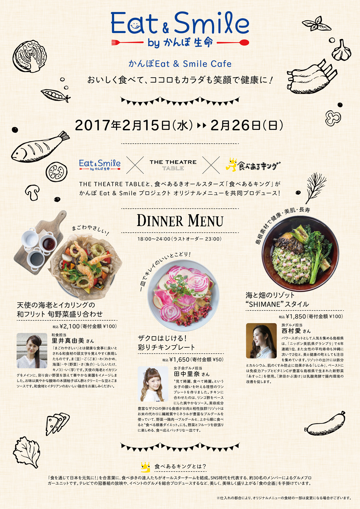 プロデュースした、カラダに嬉しいオリジナルメニューを提供いたしました。