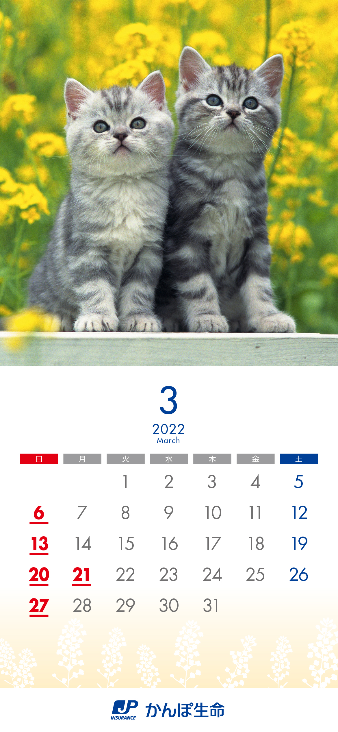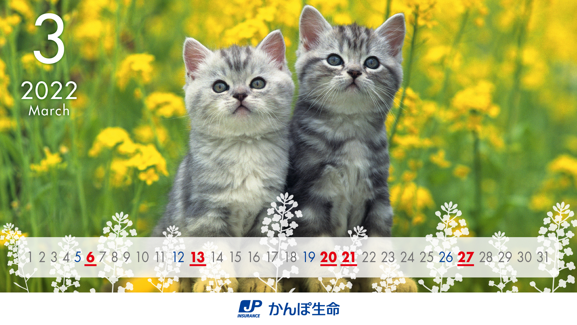 かんぽ生命では、「人生100年。よりそうかんぽ」をテーマとし、毎月さまざまな動物たちが可愛らしくよりそう写真を掲載した「2022年かんぽ生命カレンダー」を制作いたしました。※