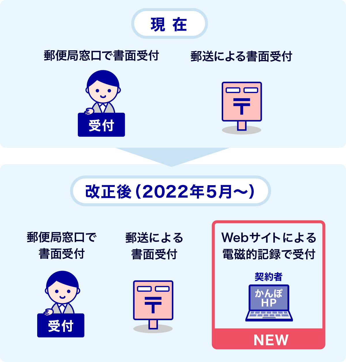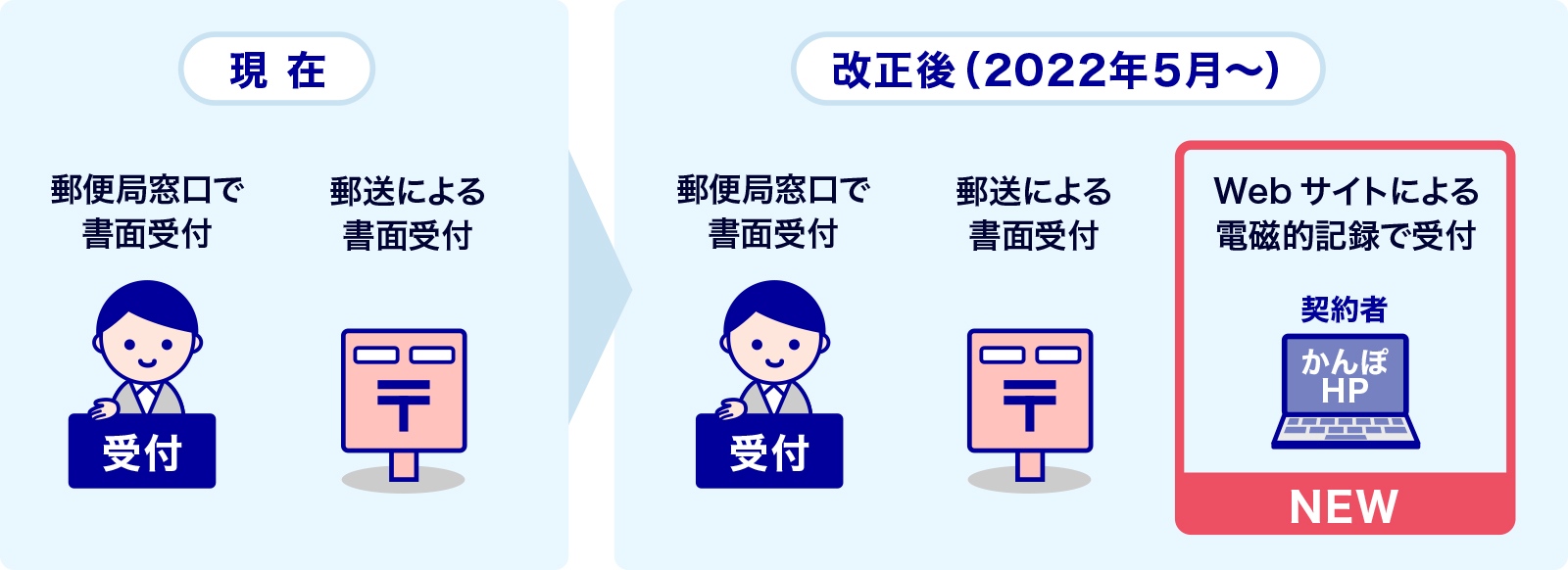 弊社では、お客さまから保険契約の申込みの撤回等(※)のお申出を受け付ける場合、郵便局所での書面受付もしくは郵送による書面受付に限定しておりましたが、保険業法の改正に伴い、2022年5月9日以降はWebサイト(お問い合わせ、ご意見・ご要望フォーム)による受付を開始します。