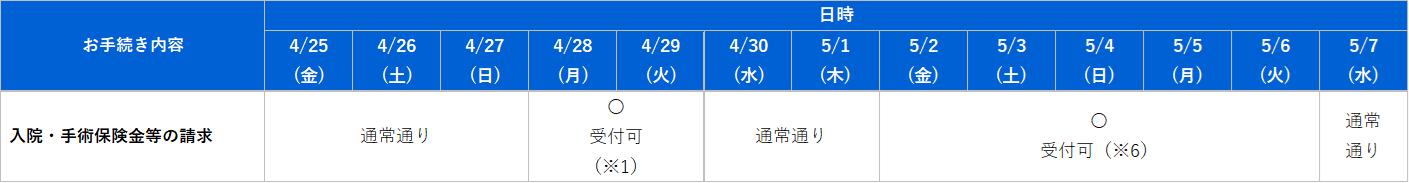 ゴールデンウィーク(2025年4月26日(土)~2025年5月6日(火))期間中のマイページおよび保険金請求Webサービスにおけるお手続きについてお知らせします。