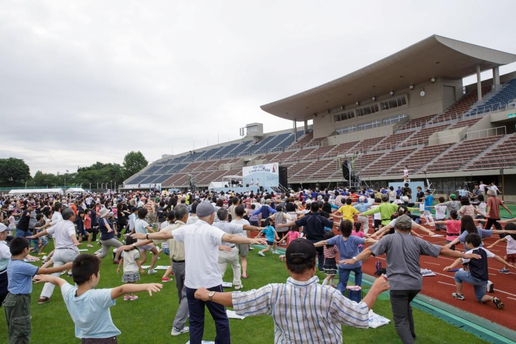 「1000万人ラジオ体操・みんなの体操祭」は、全国で"1,000万人にも及ぶ人々に一斉にラジオ体操を行っていただく"という趣旨で、1962年(昭和37年)から毎年1回開催しており、今年で53回目となります。