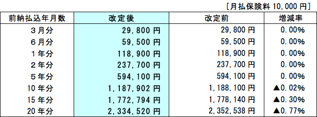 2018年4月1日以降に適用する前納払込保険料の改定について