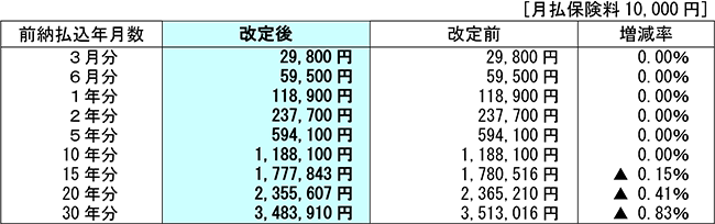 2021年4月1日以降に保険料の前納払込みをしていただく場合の前納払込保険料について改定します。