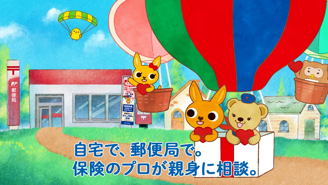 今回のWebCMでは、前回の「かんぽ 保険のご相談キャンペーン」に引き続き、かんぽ生命の企業キャラクターである「かんぽくん」と「ゆめちゃん」「ゆめぴよ」、日本郵便のキャラクターである「ぽすくま」とその仲間たちがコラボレーション。郵便局との一体感を作りながら、「もっと!かんぽ 保険のご相談キャンペーン」への参加を呼びかける内容になっております。