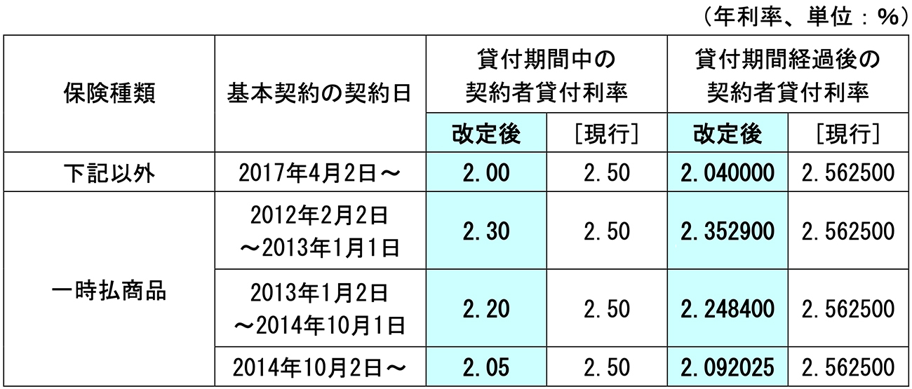 2023年4月1日以降に保険契約者が契約者貸付を受けられる場合について改定いたします。
