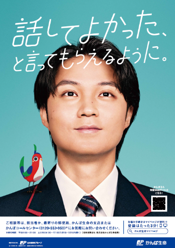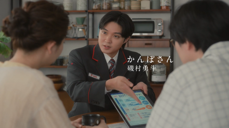 磯村さんが演じている「かんぽさん」の姿を通じ、近くのかんぽ生命や郵便局にいる「かんぽさん」を身近に感じていただければ幸いです。「話してよかった。」と言ってもらえるように。全国の「かんぽさん」はいつでもみなさまのそばにいます。