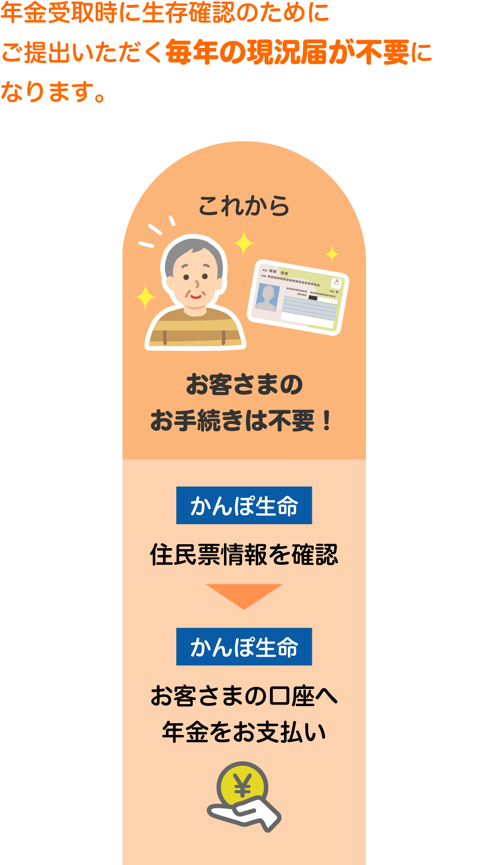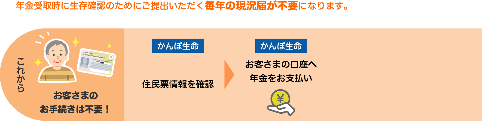 ①終身年金の自動支払(年金支払時の現況届提出を省略)