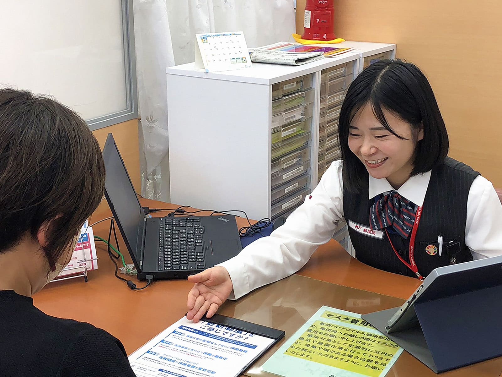 外向的な社員に比べて思うような結果が出せず、お客さまとどう接すれば良いのか悩む日々が続きました。そんな常盤井に、転機が訪れます。2017年に高山郵便局へ異動したことがきっかけでした。常盤井 「高山郵便局で働く先輩方はとても穏やかで、わりと自分と似たタイプの方が多かったんです。同期と自分を比較することなく自分のペースを大事にできるようになり、結果的に自然体で営業活動ができるようになりました」チームワークや助け合いを大事にする職場で、上司や周りの先輩に支えられたことも大きかったと言います。