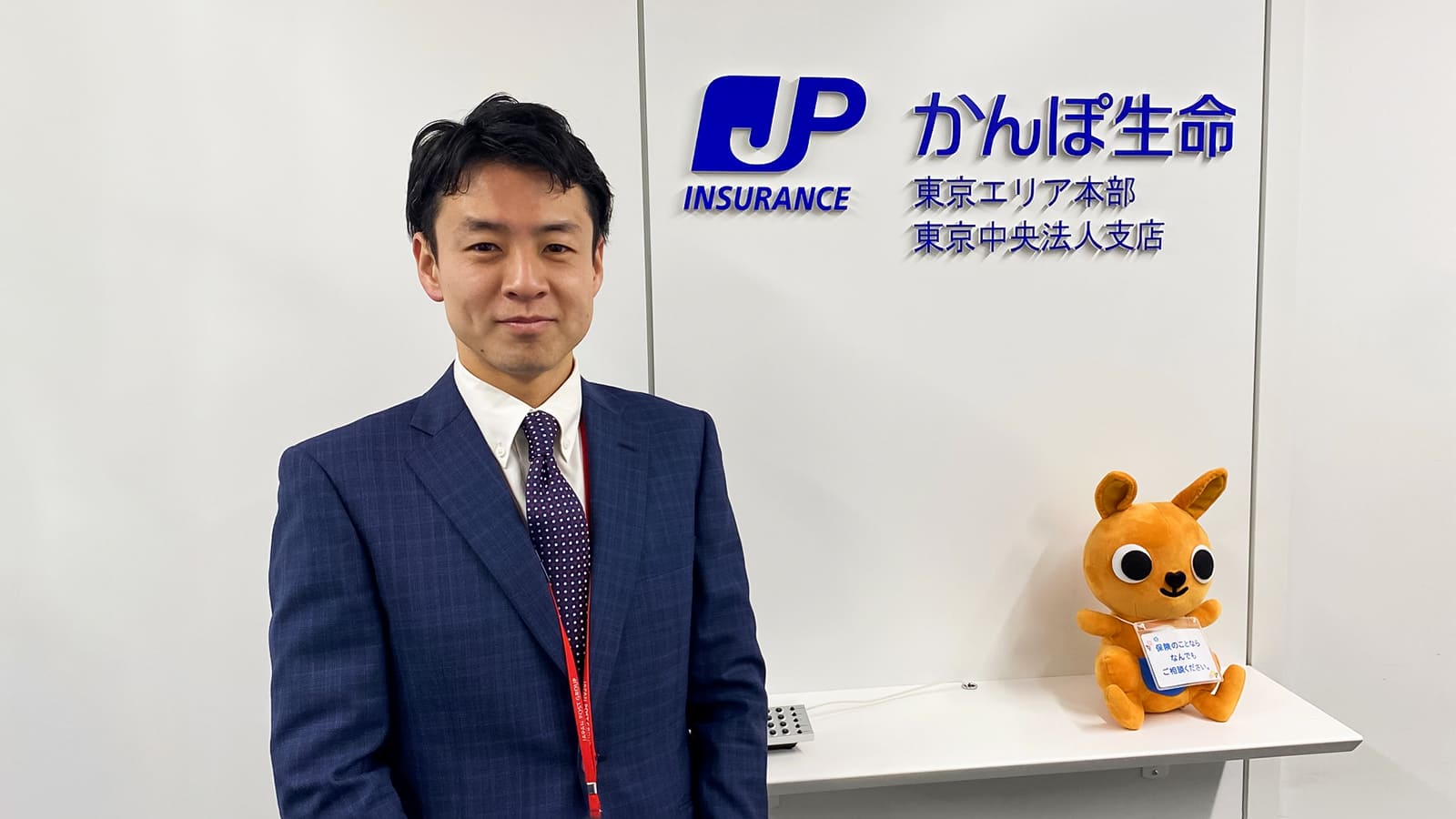 福田がかんぽ生命保険に中途入社したのは2018年。東京中央法人支店に配属され、新規営業に携わりました。生命保険の新規営業では、お客さまに会っていただくまでがひと苦労。実際にお会いできたとしても、「新たな生命保険は考えていない」と言われることがほとんど。それでも、福田は地道にキャリアを重ねていきました。