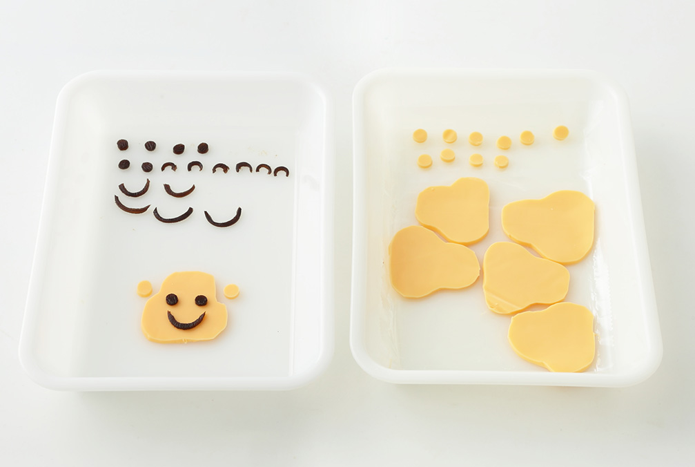 スライスチーズと昆布を切って、サルの顔を作る -