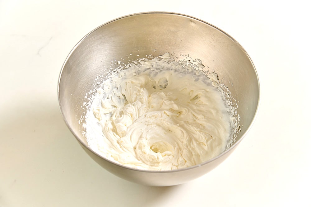 ボウルに生クリームを入れとろみがつくまでホイッパーで混ぜたら、砂糖を加えて八分立てにする