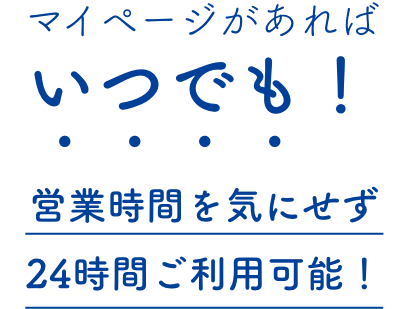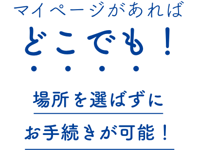 大規模な自然災害が発生したときも、スマホやパソコンからいつでもどこでもご利用可能なマイページがあれば、もしものときでも安心です。