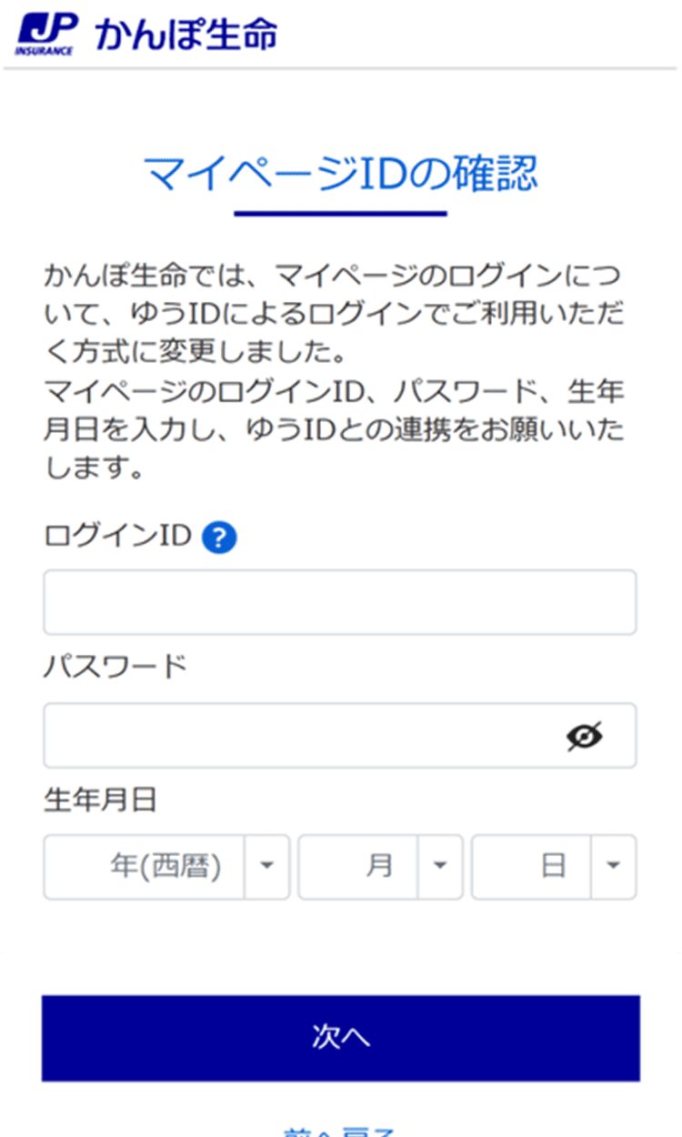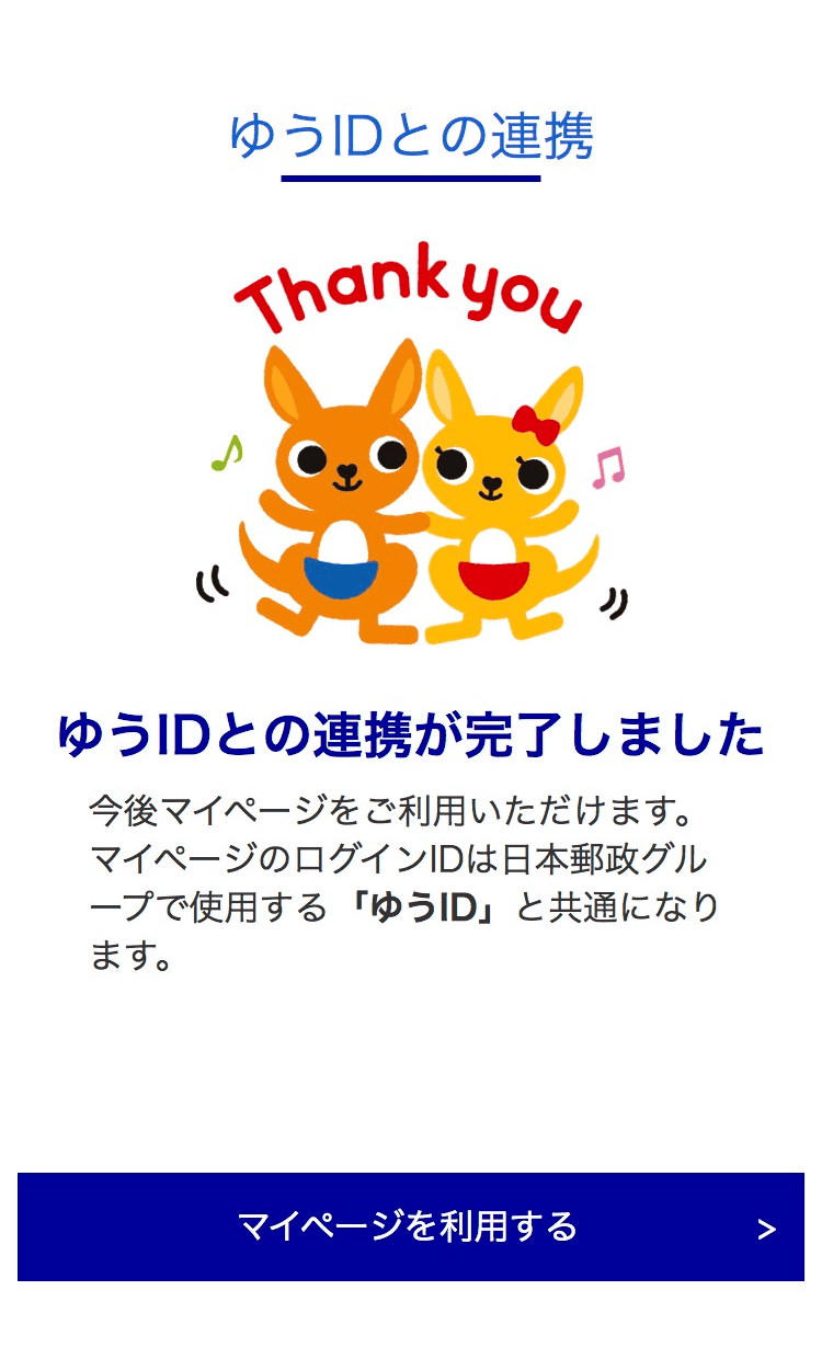 マイページのログイン画面が変更されますので、画面の案内に沿って、ゆうIDへの変更手続きをお願いいたします。