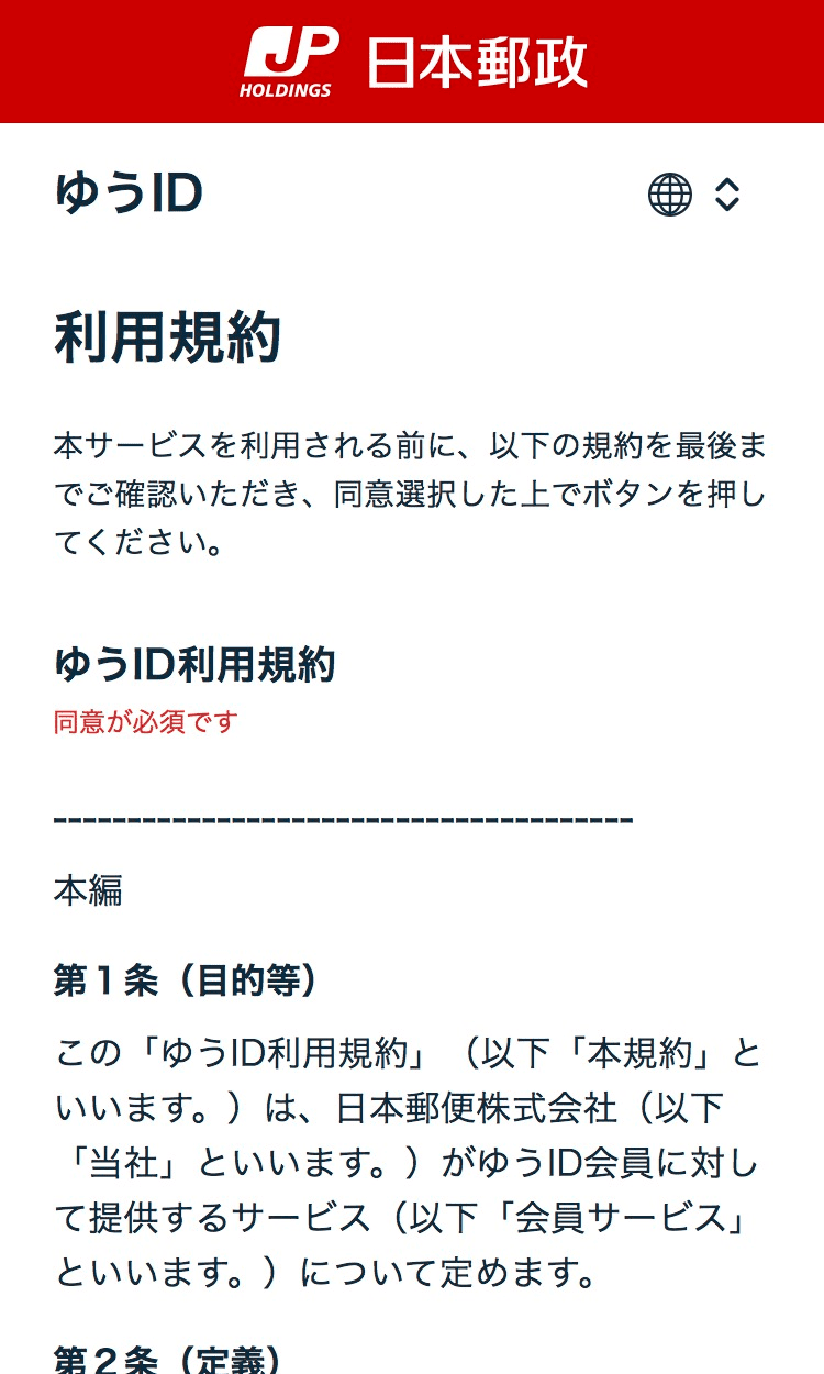 以下のリンクからゆうIDの新規登録をお願いします。