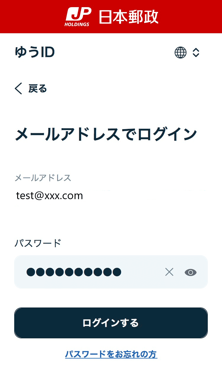 パスワードの再設定を行うことでお持ちのメールアドレスがゆうIDに登録されているかを確認できます。