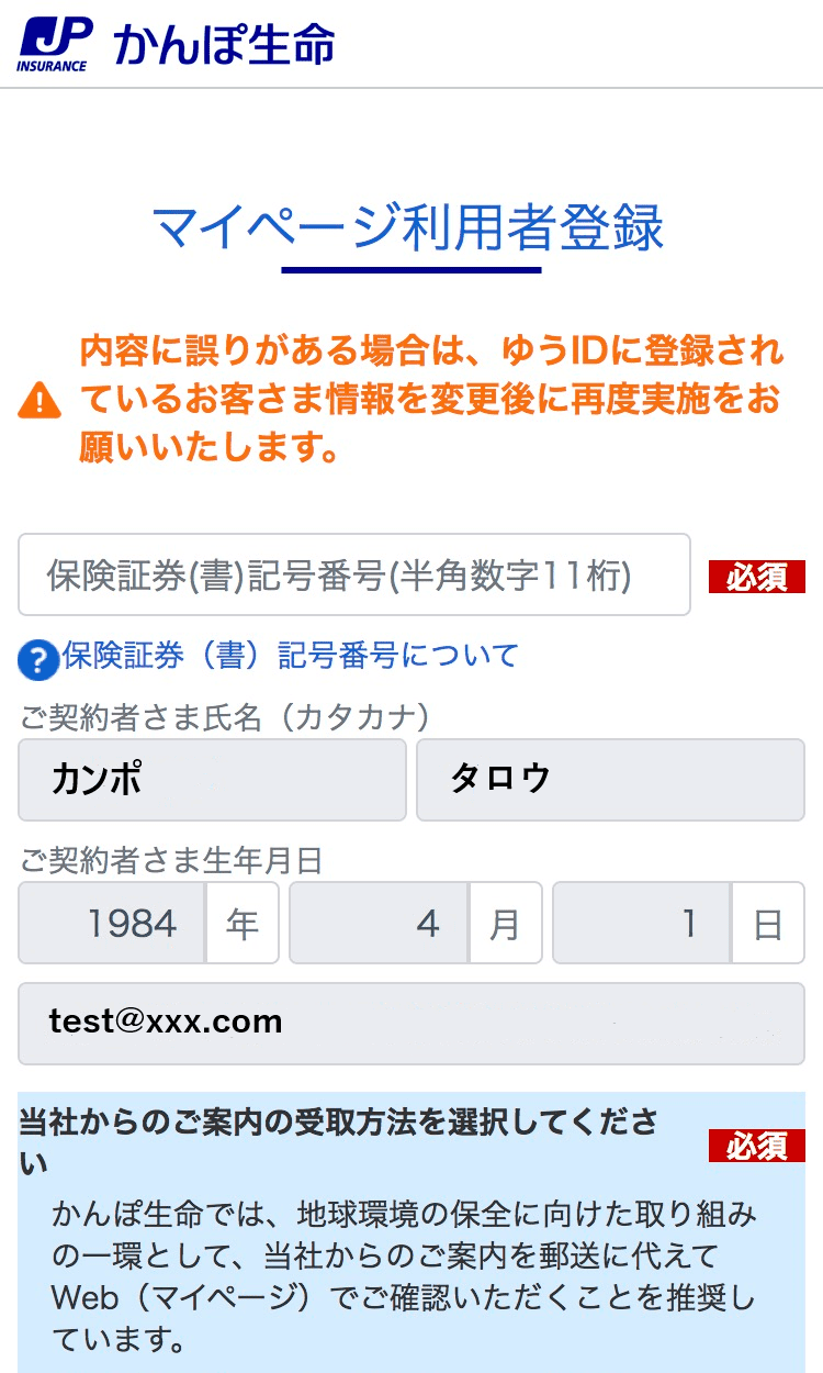 かんぽ生命では、マイページのログインIDを、